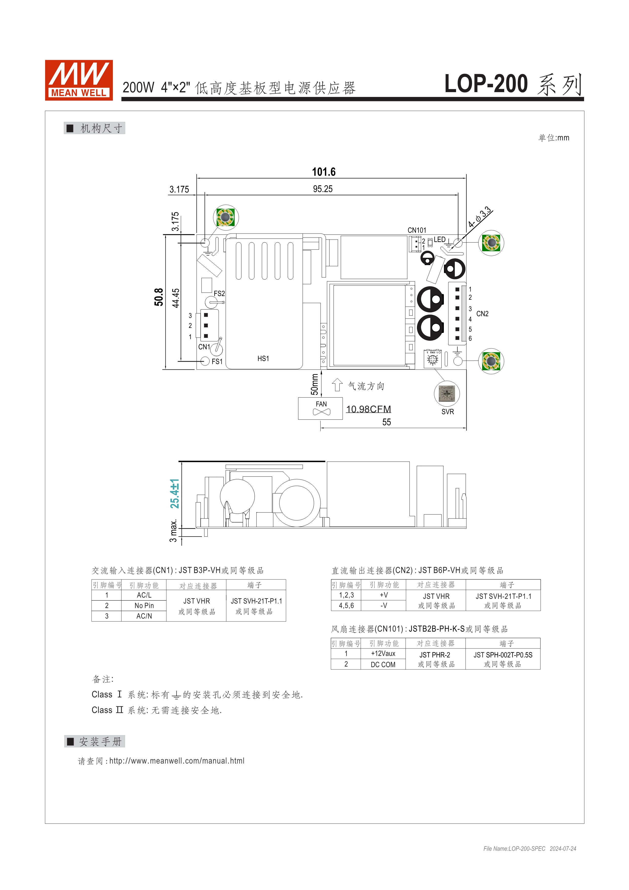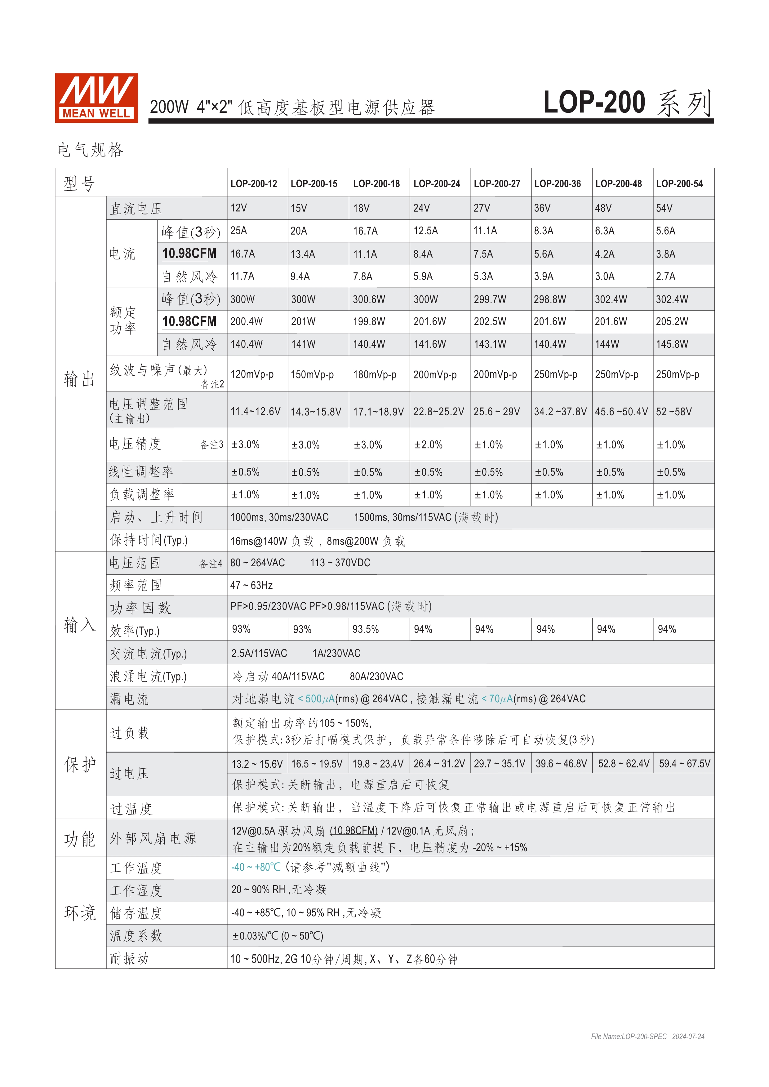 明緯專利號:ZL 202223277512.1 4"x2" 和 5"x3" 低高度小巧外型 (25.4mm~33.5mm) 全球安規(guī)多領域認證 (資通訊62368-1, 醫(yī)療60601-1, 家用60335-1, 工業(yè)用61558-1/-2-16) 150%峰值負載@3秒 符合Class I或Class II 過電壓類別III (OVC III) -40℃ ~ +80℃寬操作溫度範圍