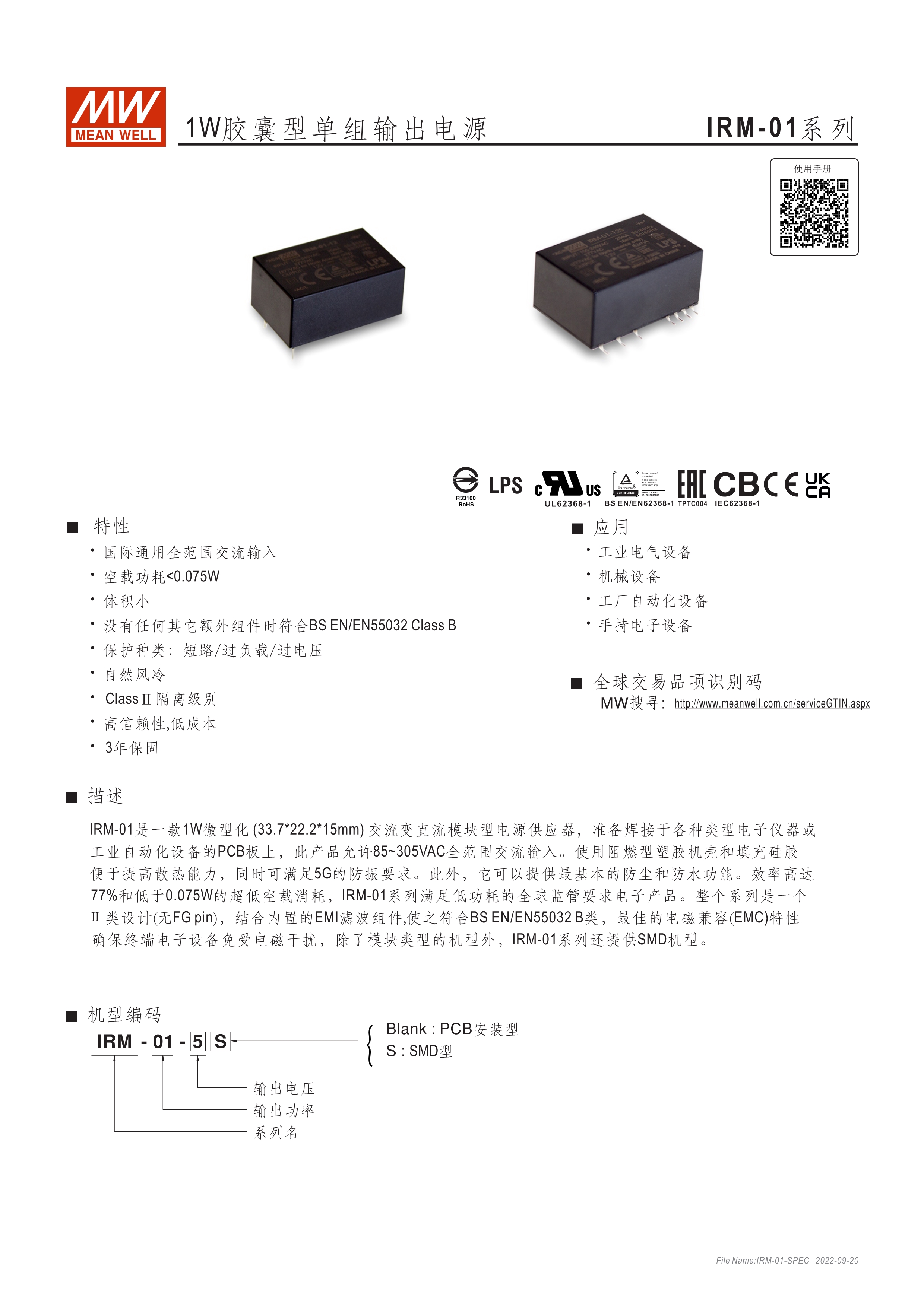 安裝于終端設備之PCB上 小型灌膠膜塊 空載功耗<0.075W~0.1W 操作溫度:-30~+85℃ (依機型) 不需外接任何組件即可符合 EN55022 class B PIN, SMD, 端子臺等多種選擇
