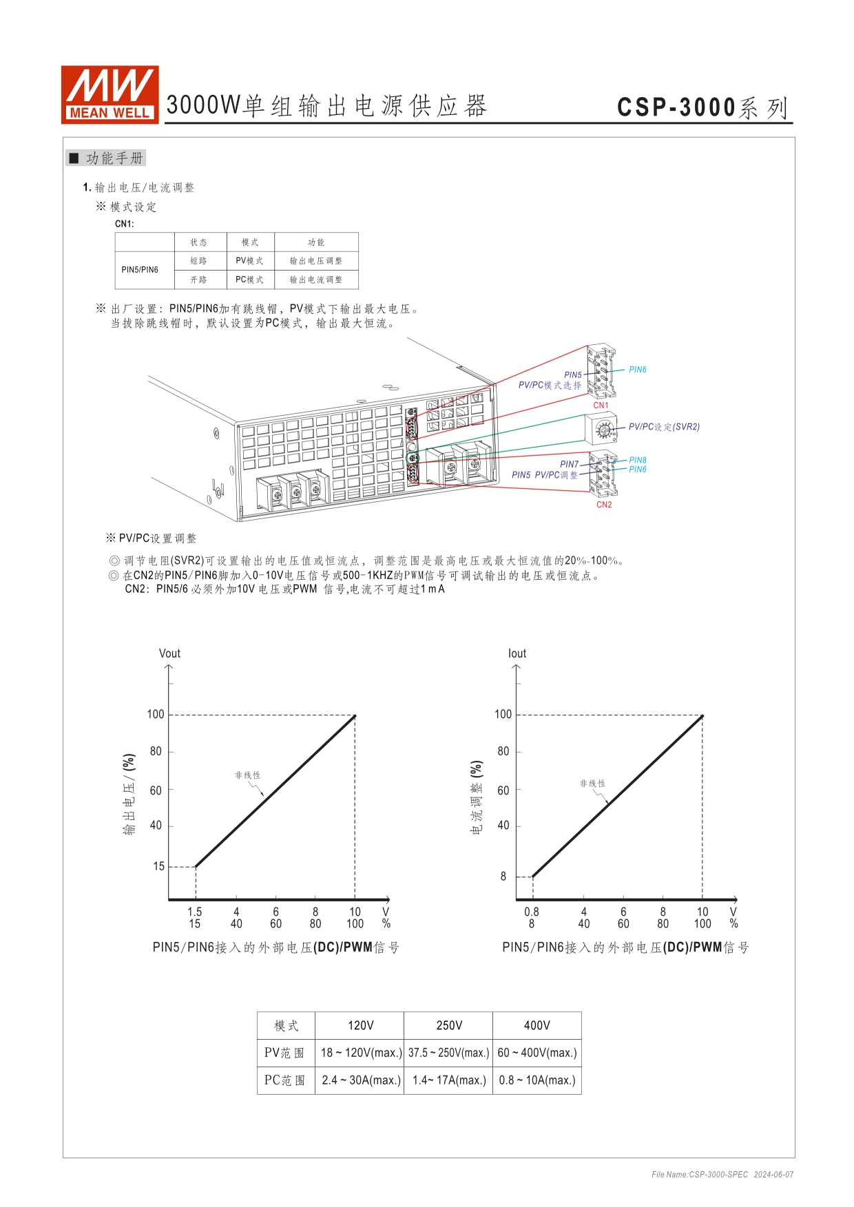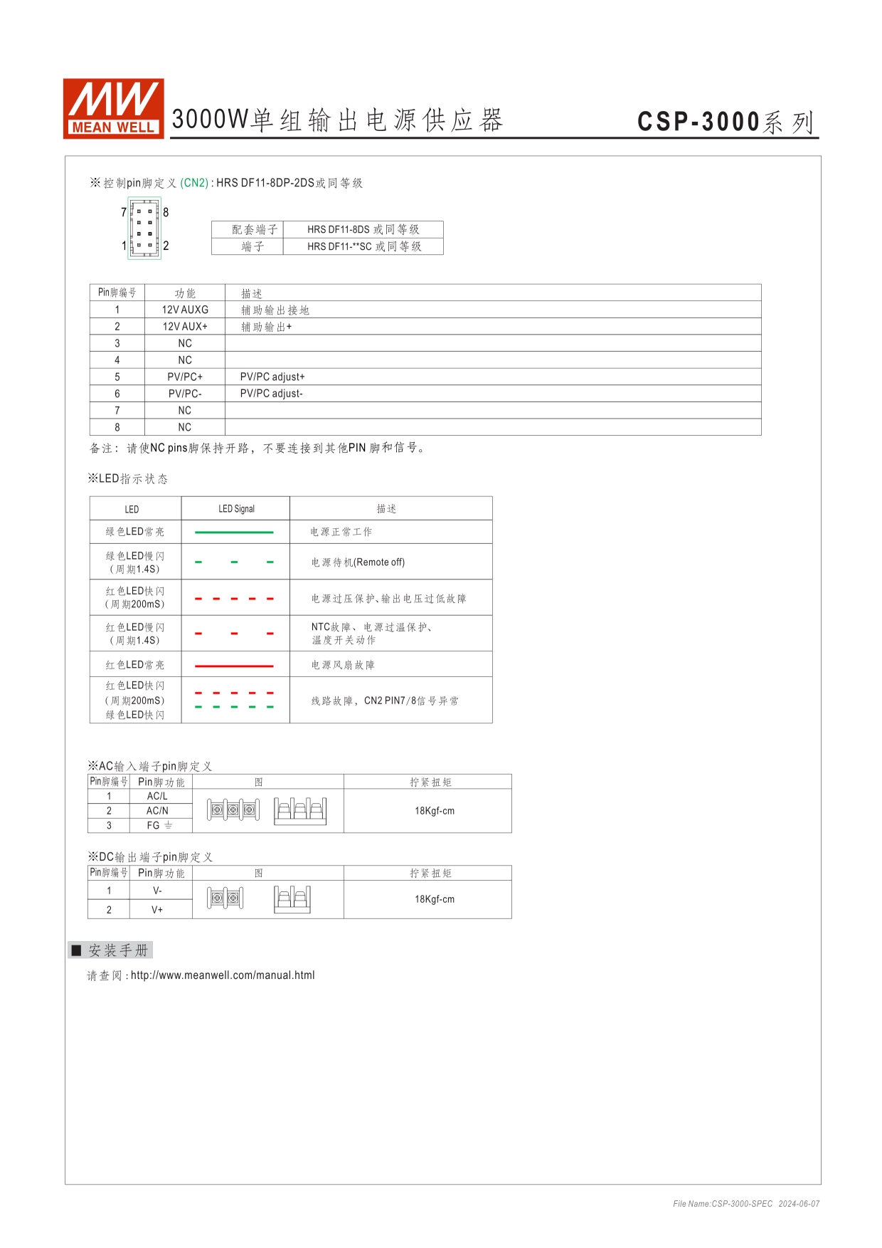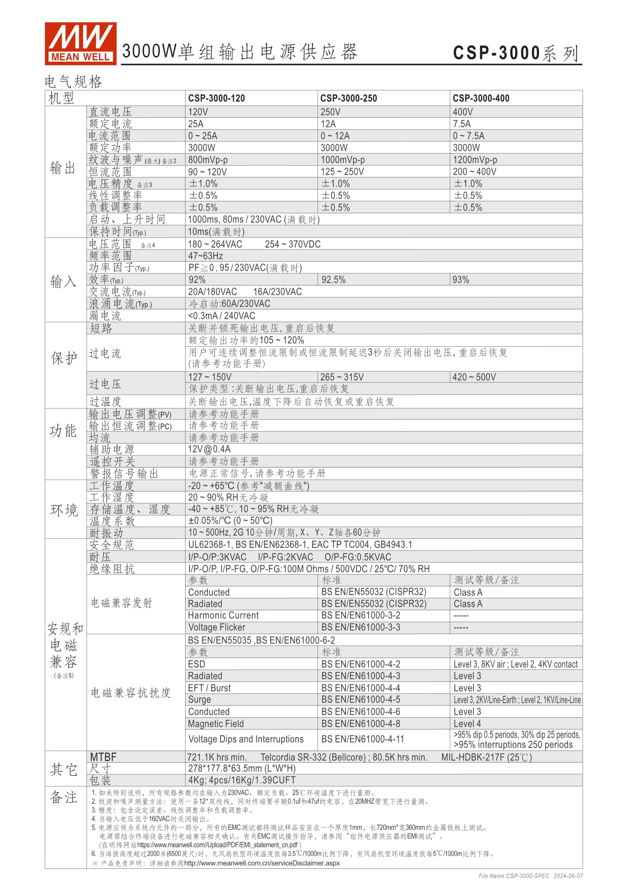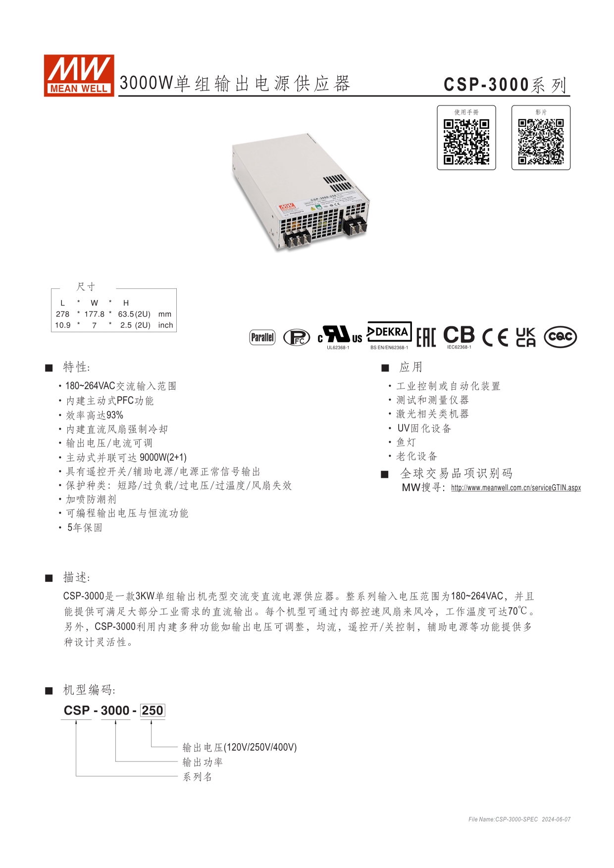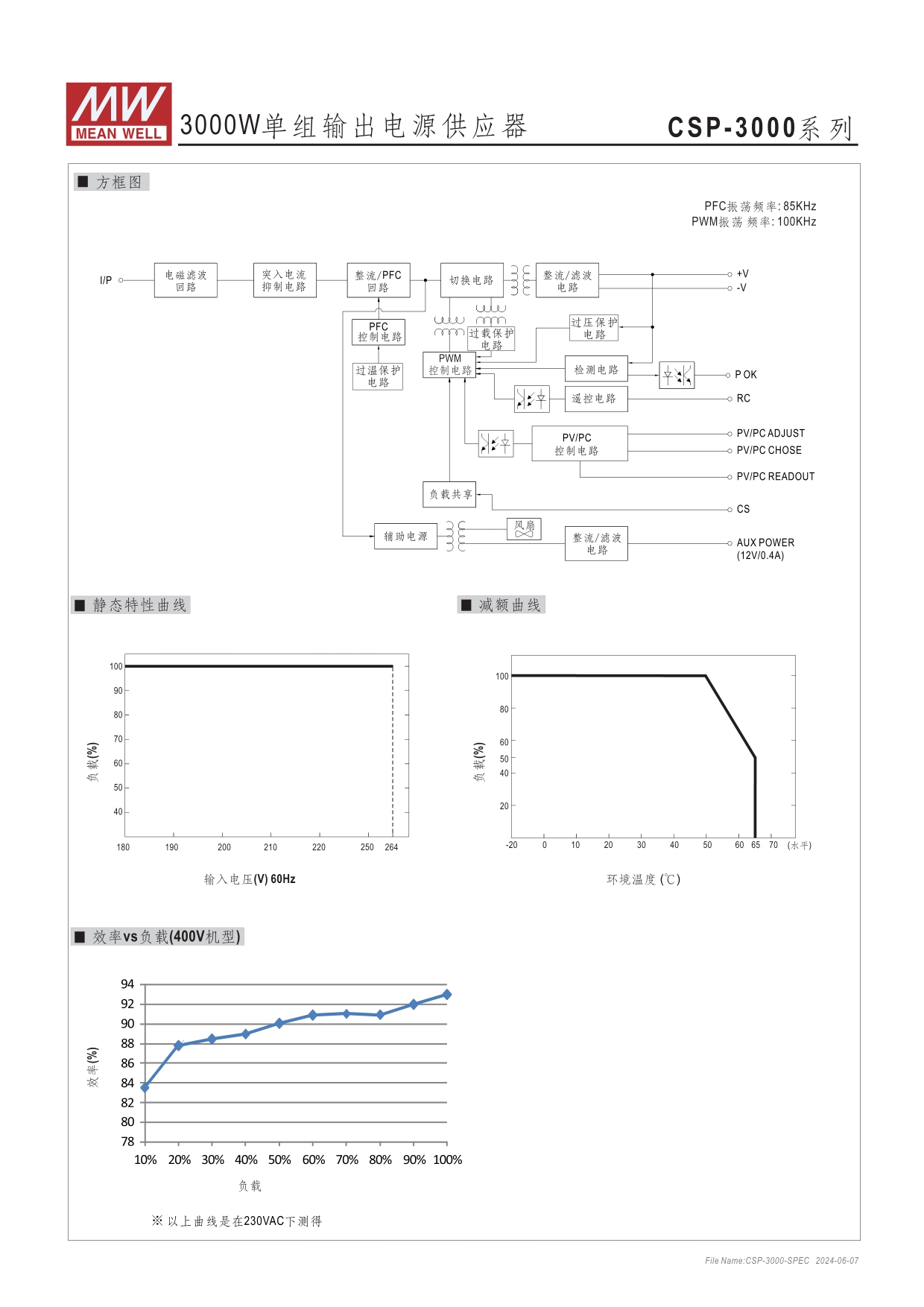 180~264VAC交流輸入 內(nèi)置主動式PFC功能 高效率達93% 內(nèi)建直流風扇強制氣冷 可程序化輸出電壓/電流 主動式均流設(shè)計達9000W(2+1) 內(nèi)建遠程開關(guān)控制 /輔助電源/輸出OK訊號 保護種類:短路、過電流、過電壓、過溫度、風扇失效 5年保固
