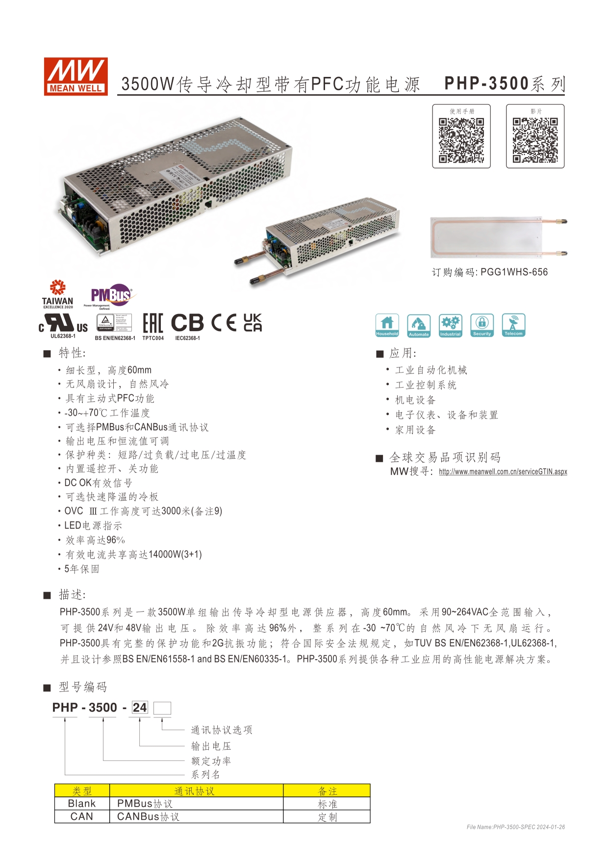 水冷散熱設計 可程序化輸出功能: 輸出電壓與輸出電流恒流點可調整 支持PMBus通訊協(xié)議 (可選配CANBus協(xié)議) 支持輸出并聯(lián)功能 HV款式為高壓輸出機型 主動式均流設計,系統(tǒng)電力高可達14000W (3+1) 可選購水冷板,ordering no.: HS-656