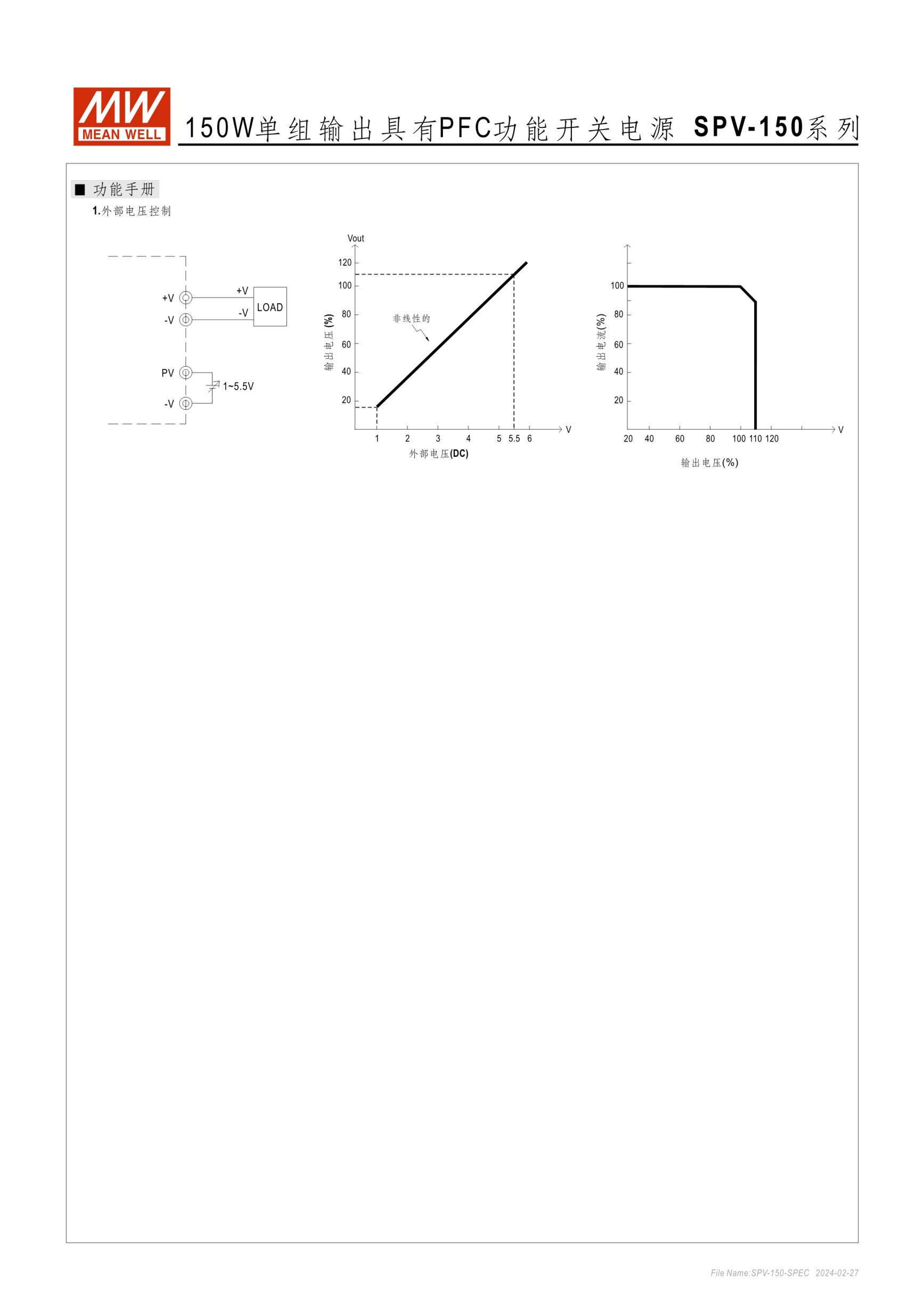 內建主動式功率因子矯正功能(active PFC) 輸出電壓可調設于原額定值的20~110%
