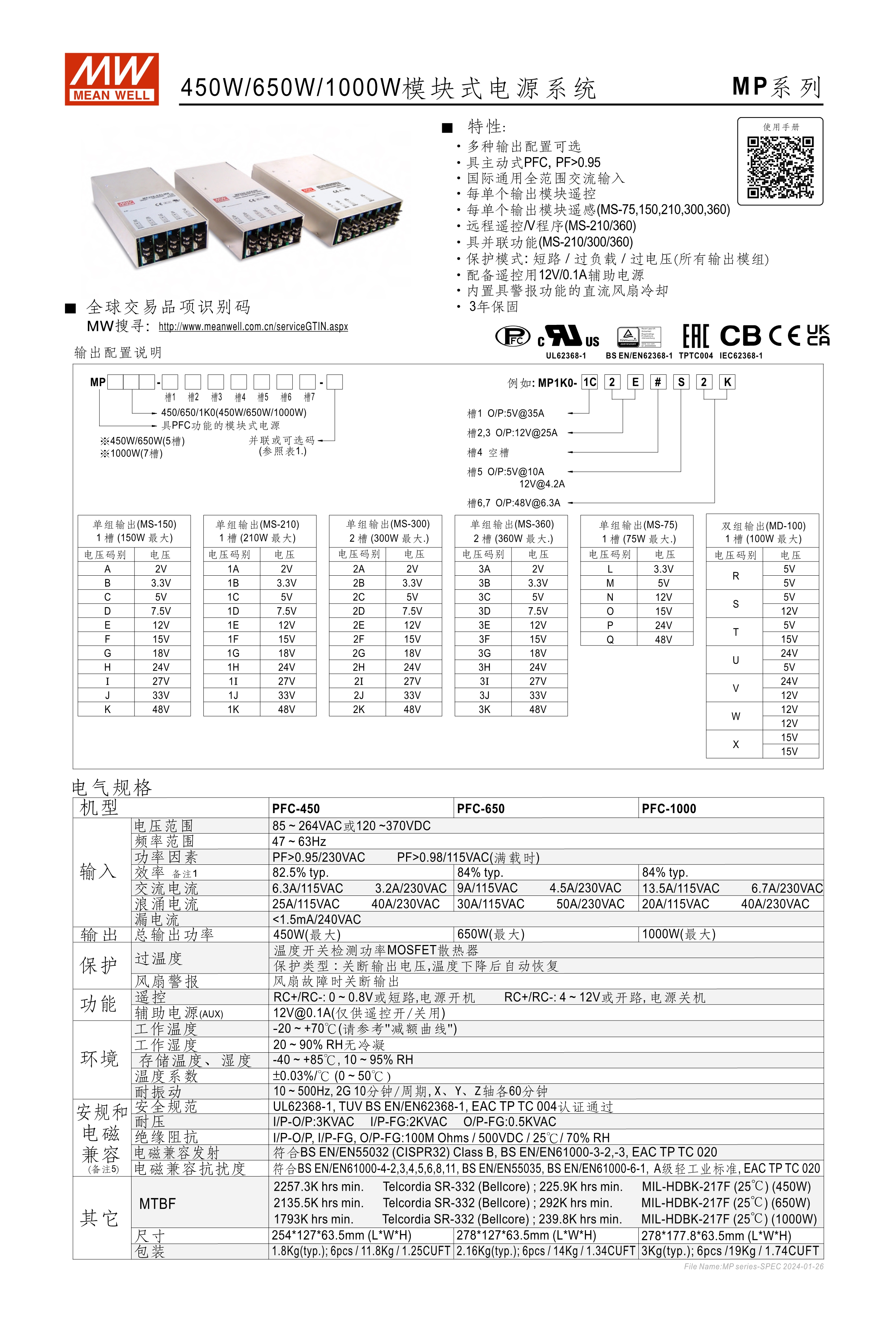 可配置式/可客制調(diào)整/高彈性電源供應(yīng)器 內(nèi)建主動式功率因子矯正功能(active PFC) MP450/650提供5插槽模塊輸出, MP1000提供7插槽模塊輸出 75W/100W/150W/210W/300W/360W模塊供選擇