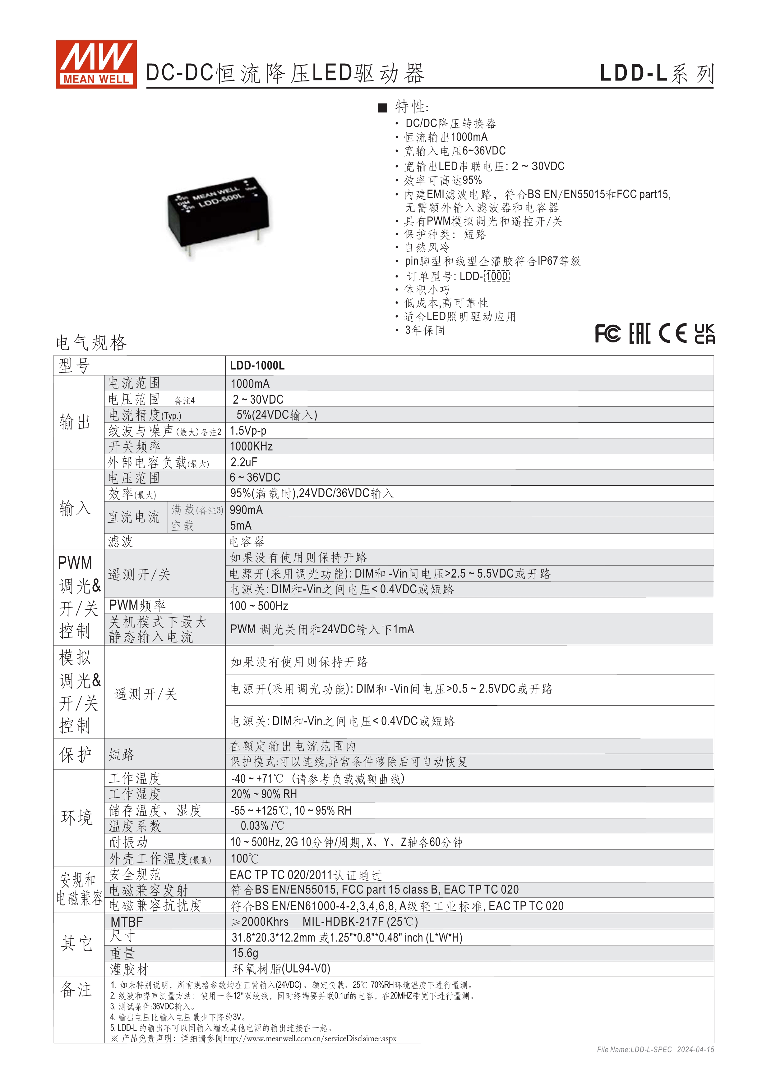 DC/DC降壓式恒流輸出LED驅(qū)動(dòng)器 最高達(dá)97%超高效率 內(nèi)建PWM+模擬調(diào)光功能及開(kāi)/關(guān)遙控功能 IP67防護(hù)等級(jí) 3年保固 具備插pin及出線兩種型式