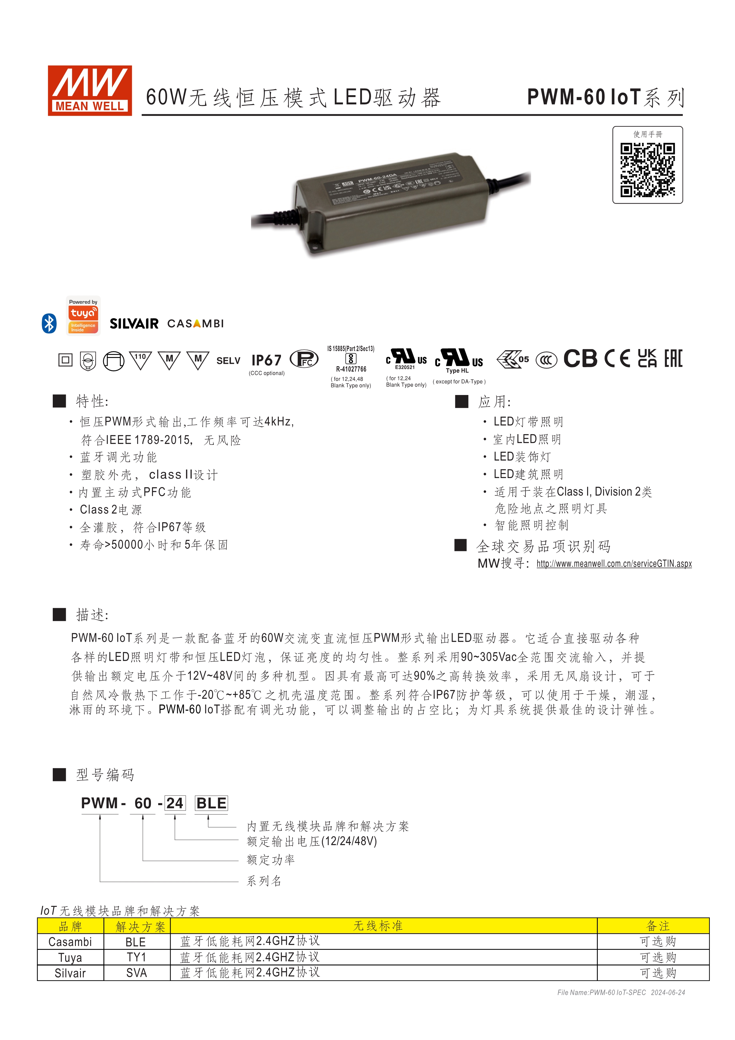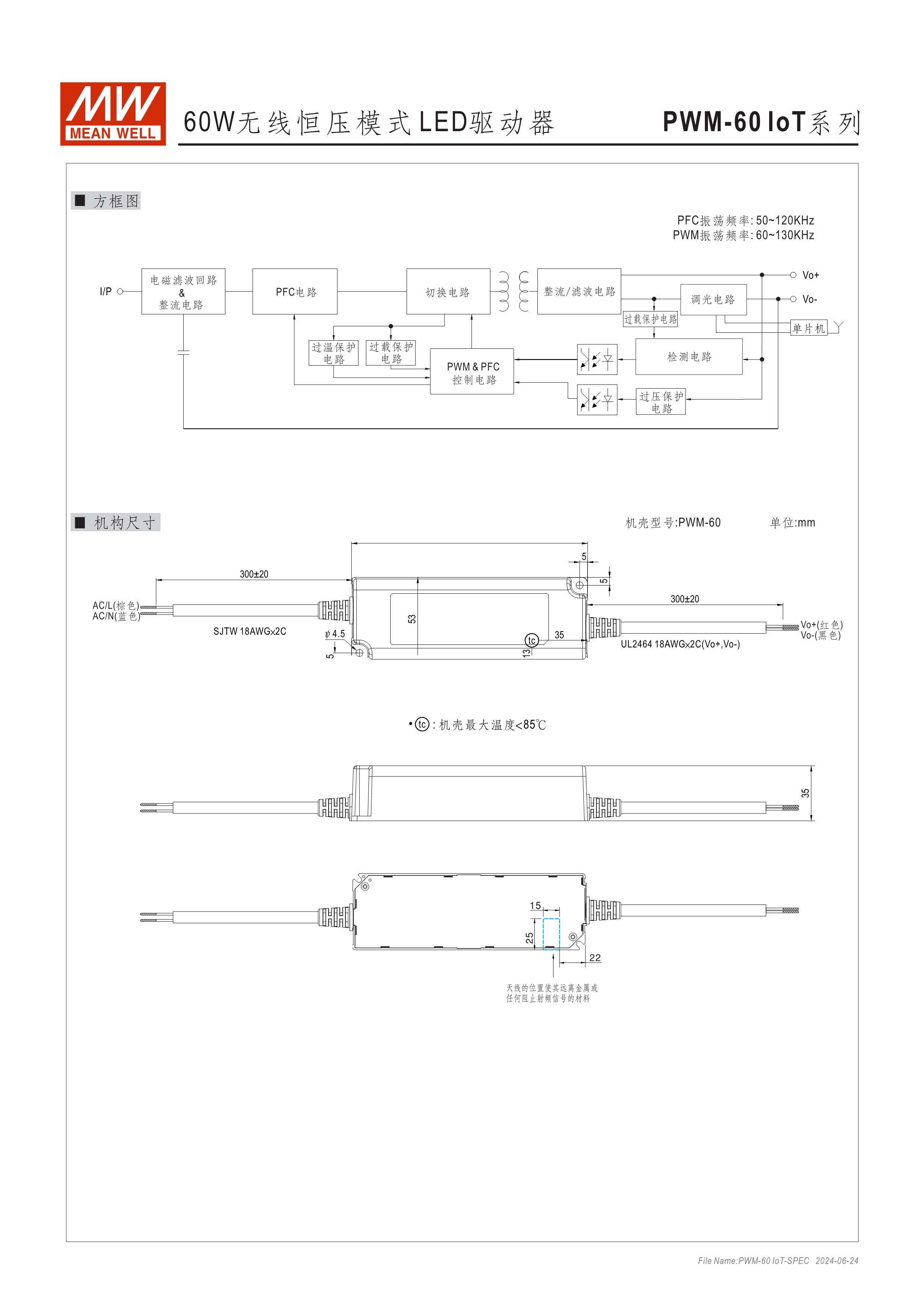 恒壓輸出模式多種可選 (PWM系列) 無(wú)頻閃設(shè)計(jì) 塑料外殼及符合Class II無(wú)地線設(shè)計(jì) 主動(dòng)式PFC設(shè)計(jì) 雷擊保護(hù)耐壓設(shè)計(jì)2KV(L-N) 保護(hù)功能:短路、過(guò)電壓、過(guò)溫度