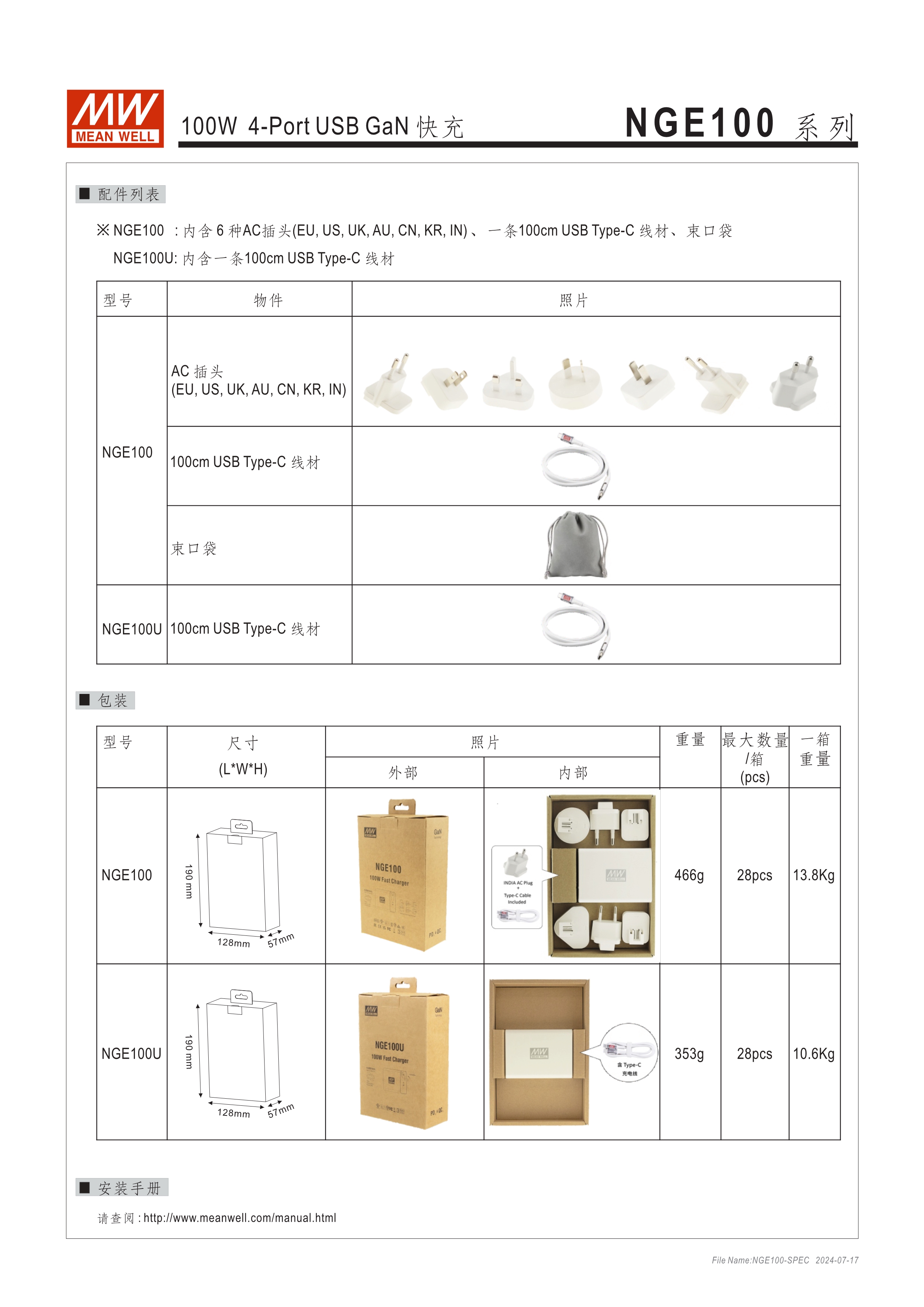 一臺(tái)可同時(shí)充多種裝置 國(guó)際版: AC插頭可變換(NGE100); 美規(guī)版: AC插頭不可換,可折疊(NGE100U) 全球國(guó)際認(rèn)證 USB-2C2A,4-Port皆可獨(dú)立快充 USB-C單port可支援最高100W快充 支援QC2.0、QC3.0、PD3.0 自動(dòng)偵測(cè)電壓:5V/ 9V/ 12V/ 15V/ 20V 保護(hù)功能 : 短路、過載、過溫 空載損耗<0.3W 能效等級(jí)Level VI 尺寸小巧 (62x 30x 85.5mm) 附贈(zèng)兼具充電及資料傳輸?shù)腡ype-C線 (100cm) 3年保固