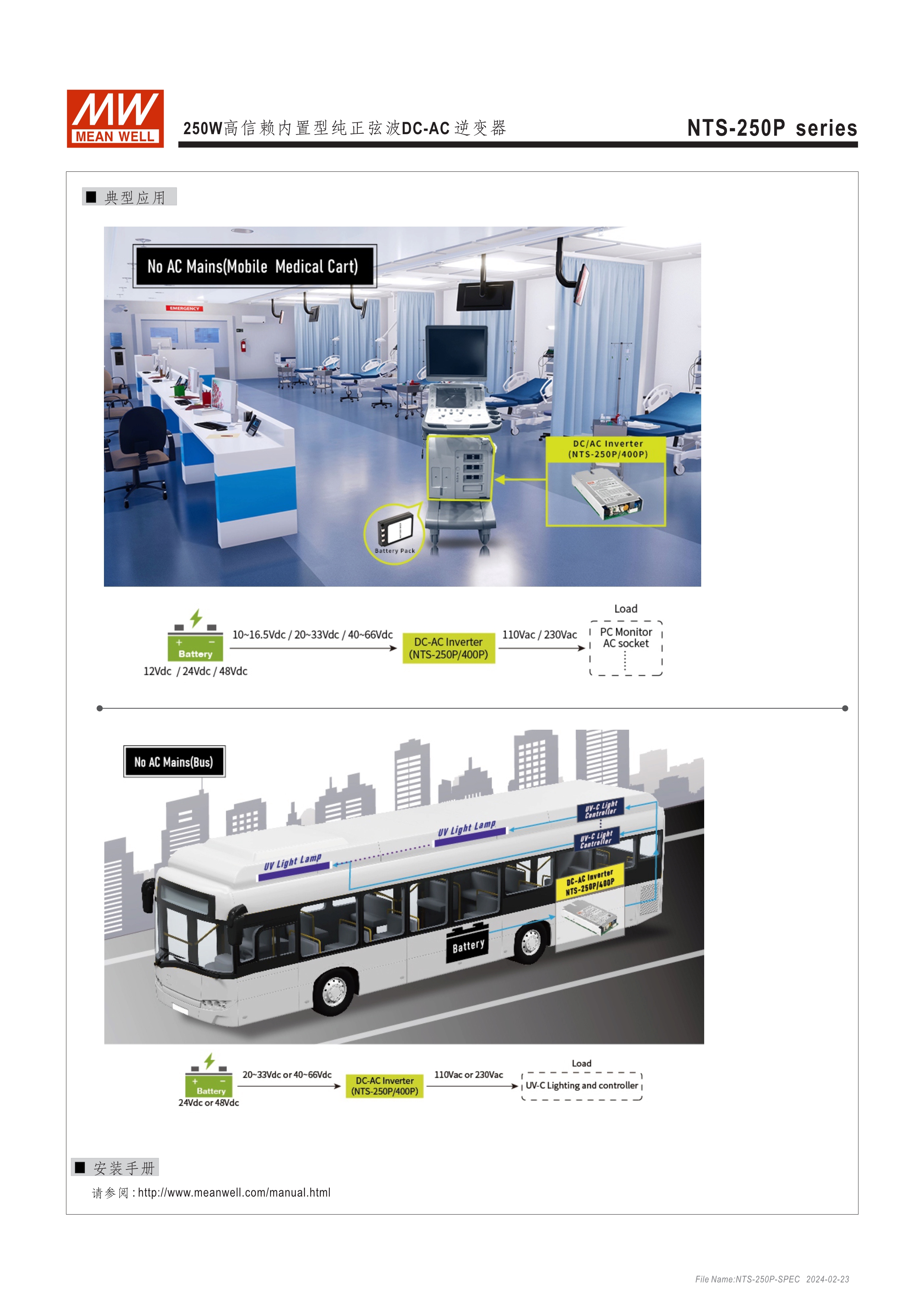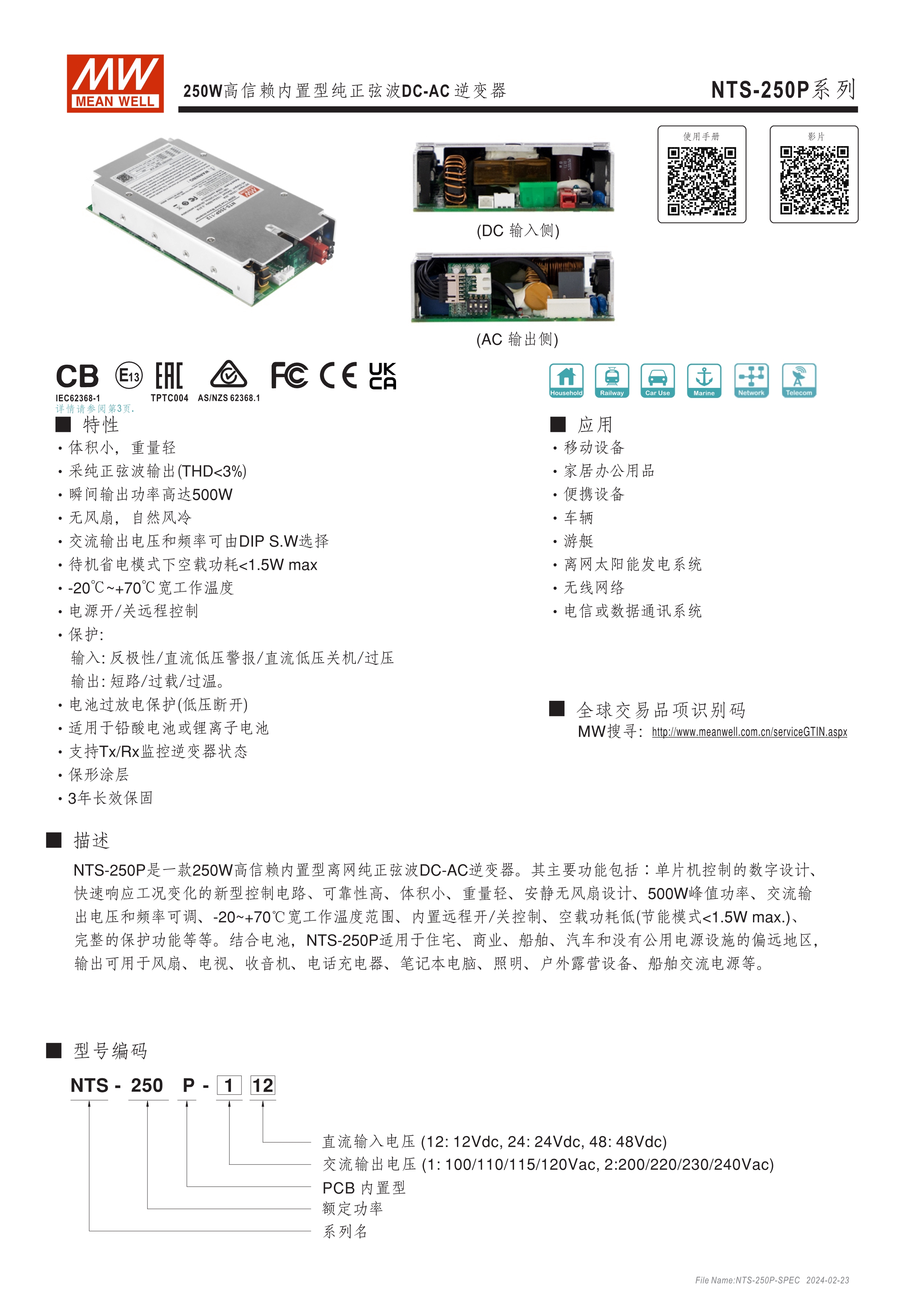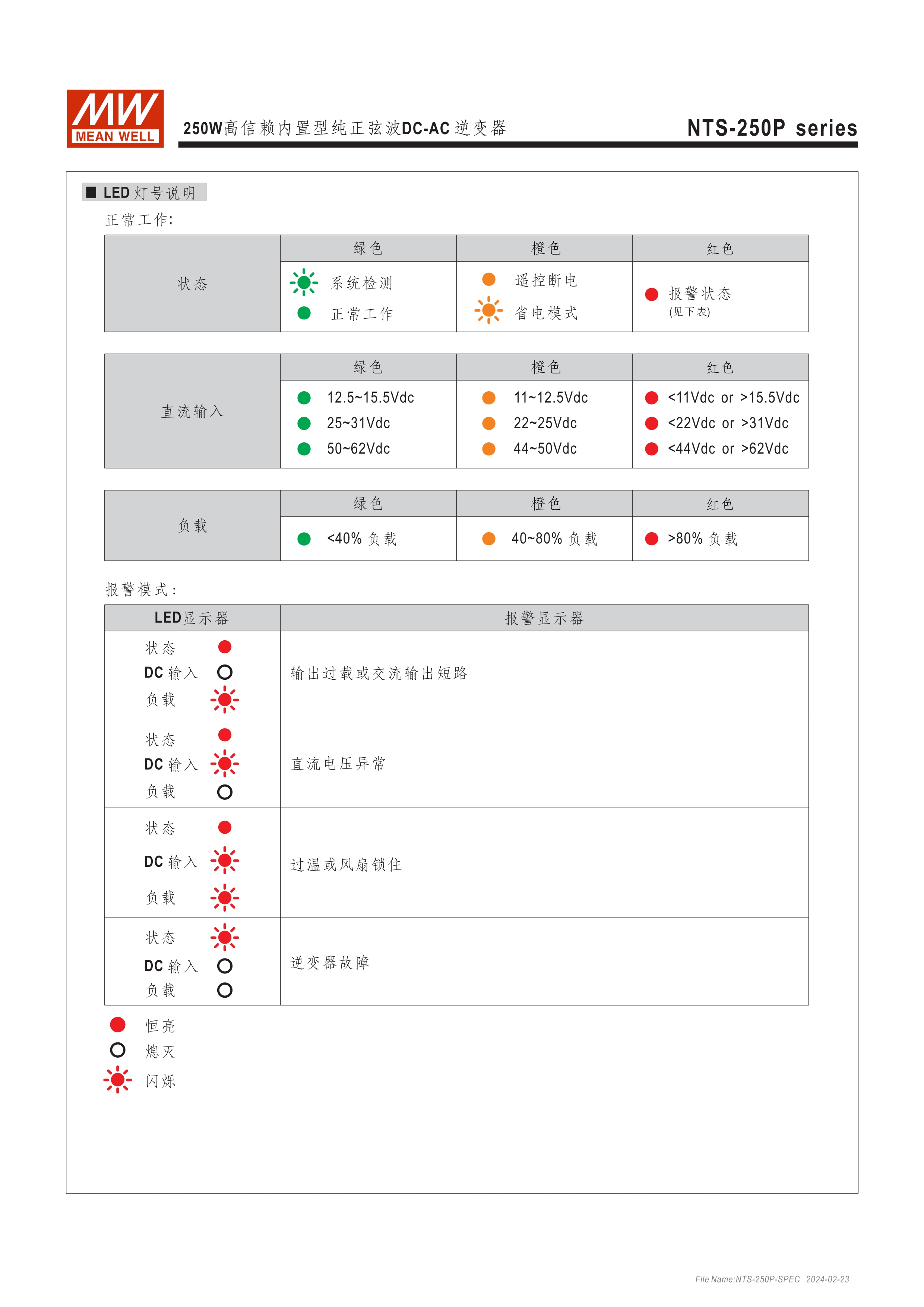 DC-AC純正弦波輸出 (THD<3%) 無風(fēng)扇設(shè)計,效率最高達(dá)93%,可自然風(fēng)冷散熱 瞬間峰值功率達(dá)雙倍輸出 內(nèi)建DIP S.W可彈性自調(diào)AC輸出電壓、頻率、節(jié)能模式 多重智能保護(hù)功能: DC輸入側(cè) - 極性反接、電壓過低、電壓過高保護(hù) AC輸出側(cè) - 短路、超載、過熱保護(hù)
