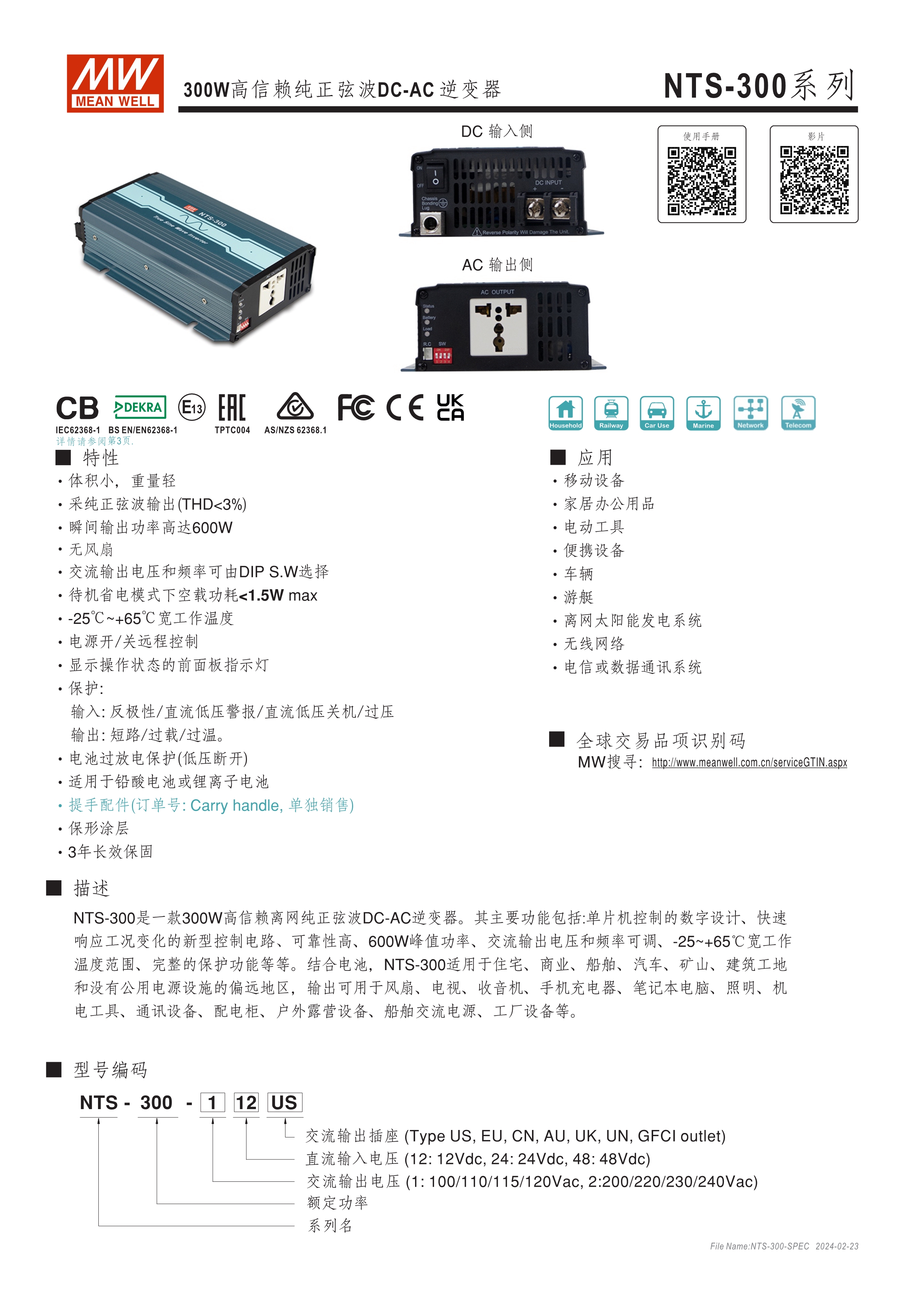 DC-AC純正弦波輸出 (THD<3%) 無風扇設(shè)計,效率最高達93%,可自然風冷散熱 內(nèi)建DIP S.W可彈性自調(diào)AC輸出電壓、頻率、節(jié)能模式 多重智能保護功能: DC輸入側(cè) - 極性反接、電壓過低、電壓過高保護 AC輸出側(cè) - 短路、超載、過熱保護