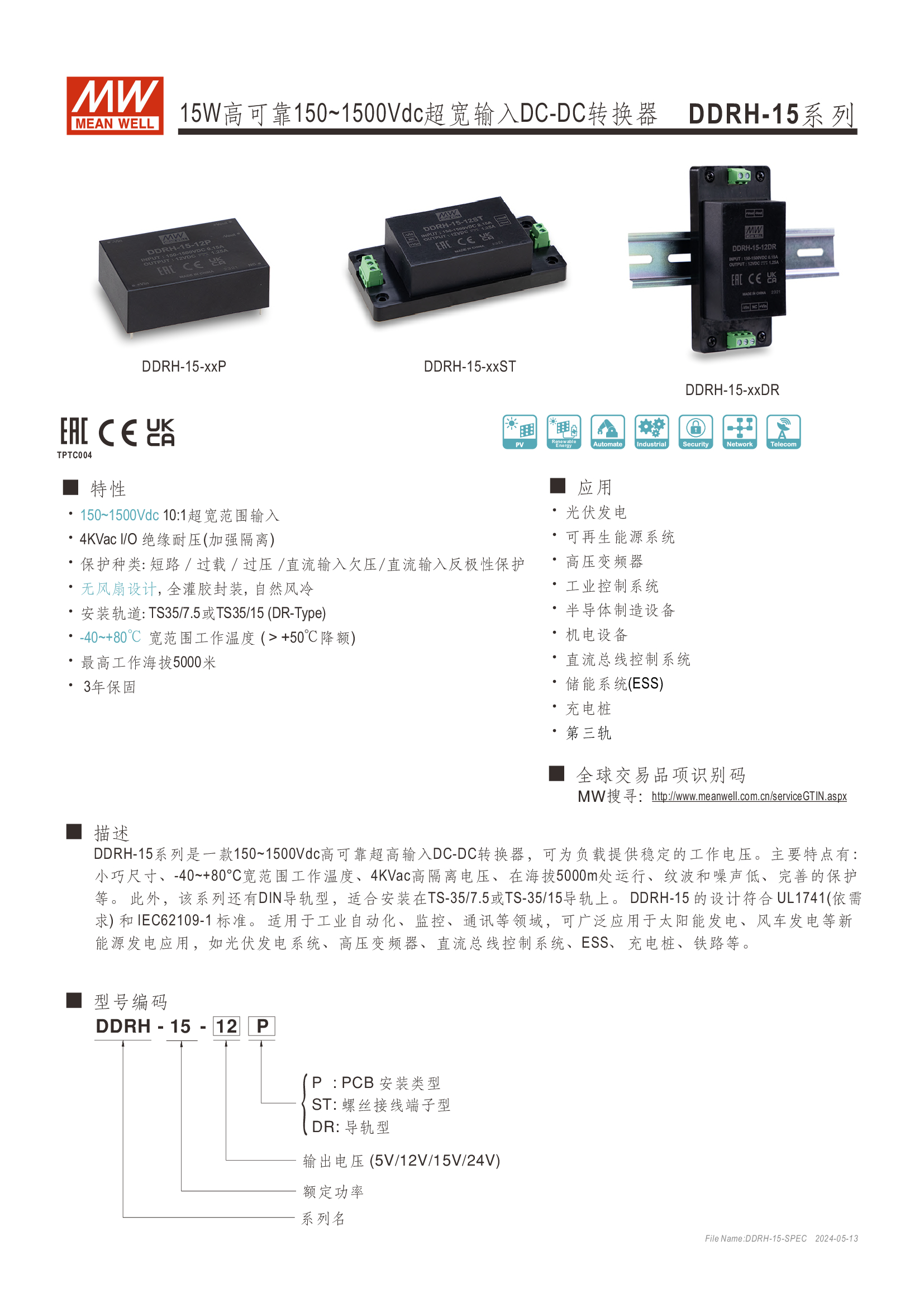 多種安裝方式可供選擇(基板型、端子式和導(dǎo)軌式) 10:1 超寬輸入范圍 內(nèi)部灌膠,提供防塵和防潮保護(hù) 超寬溫度范圍:-40℃~+80℃ 保護(hù)功能:短路保護(hù)、超載保護(hù)、過(guò)電壓保護(hù)、輸入電壓過(guò)低及極性反接保護(hù) 3年保固