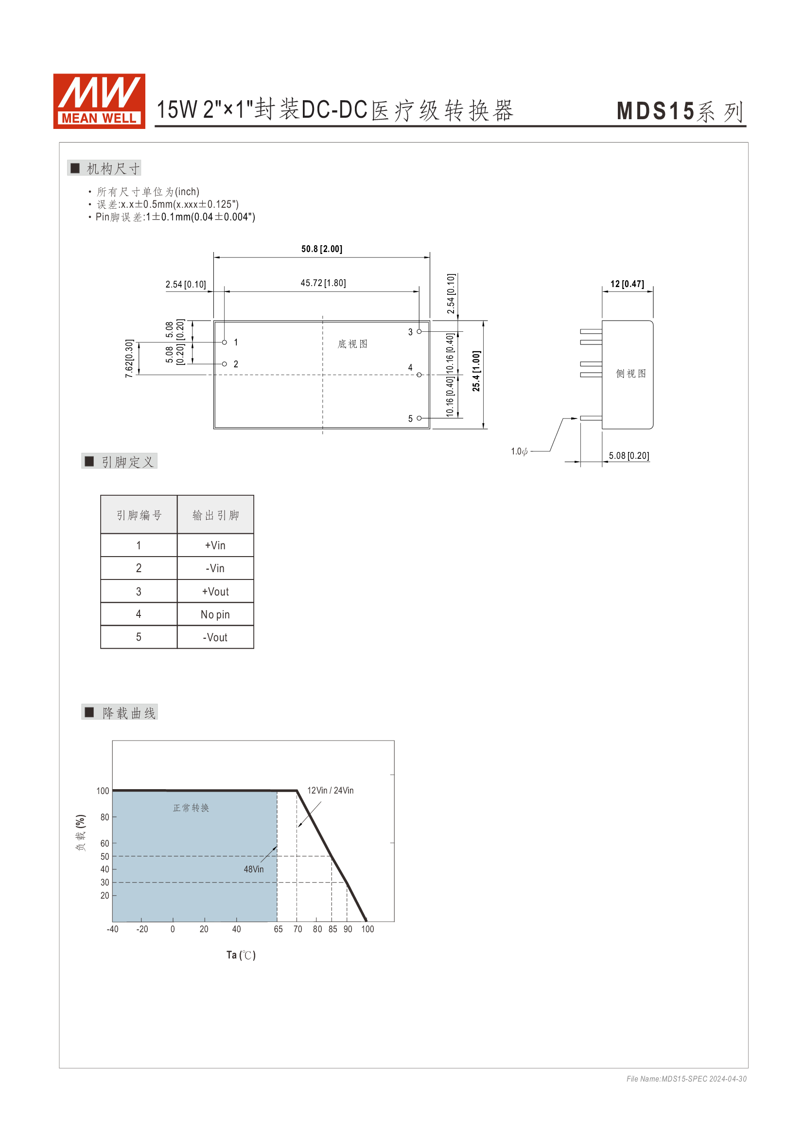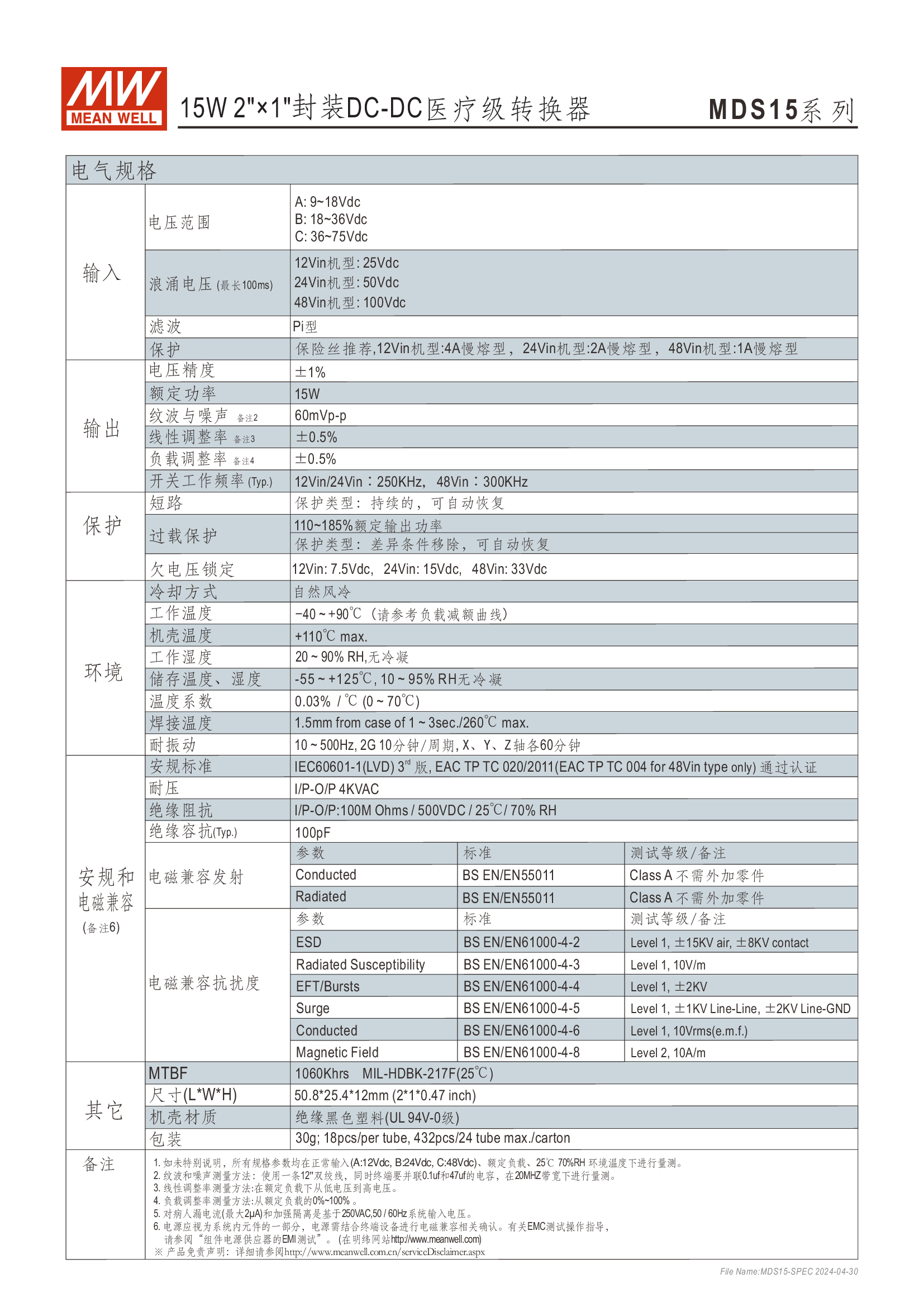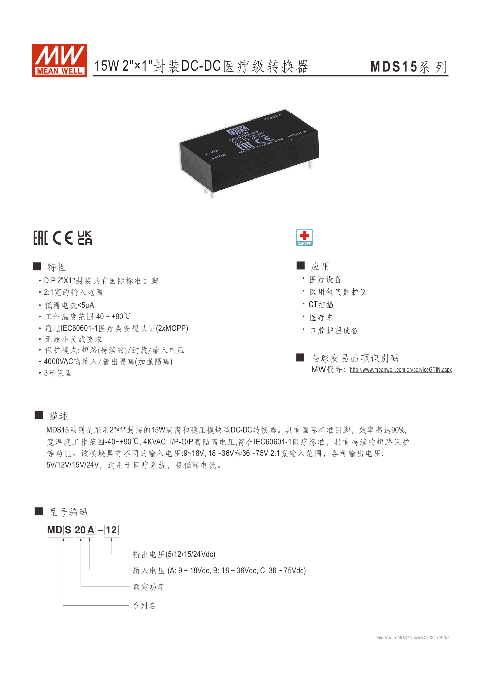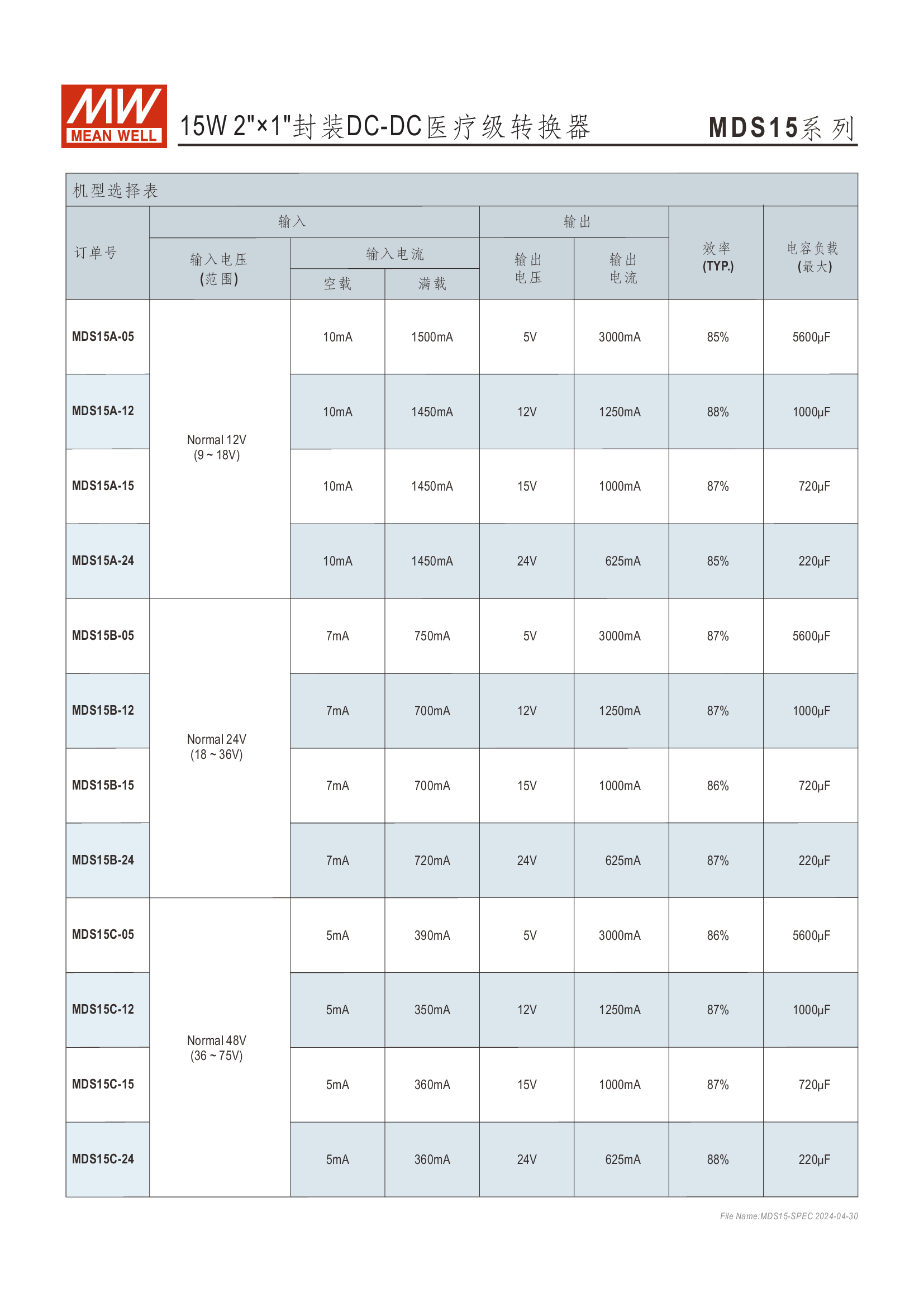 模塊型快選表 2" x 1" 單排封裝國際標(biāo)準引腳 工作溫度:-40 ~ +90℃ (不需降載) 通過醫(yī)療認證ANSI/AAMI ES60601-1 (2×MOPP) 超低病患泄漏電流 < 5μA 3年保固期