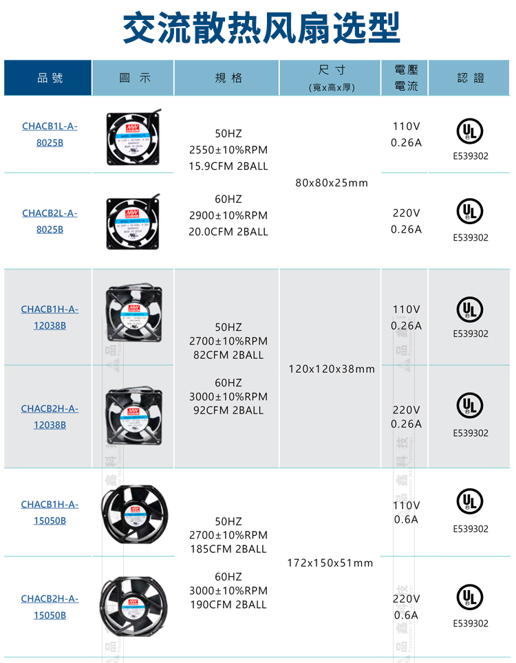 CHACB1L-A-8025B交流散熱風(fēng)扇 明緯聯(lián)源精密 工業(yè)用風(fēng)扇 UL認(rèn)證